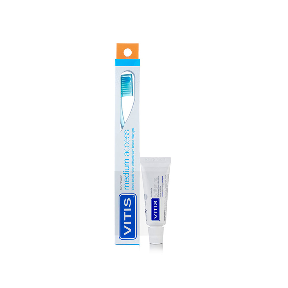 They can be brilliant – especially for brace wearers! Electric toothbrushes remove more plaque with less effort, and many have timers ensuring you brush for the full two minutes. That said, a manual brush works perfectly well when used properly. The best toothbrush? Whichever one you'll actually use twice a day! With braces or aligners, specialised orthodontic brushes like VITIS Access reach those tricky spots beautifully. With implants, sulcular or implant brushes like the VITIS Implant range of toothbrushes really help to offer specialist care to keep gums and implants healthy. Delicate gums can benefit from softer bristles like the VITIS Soft Access.